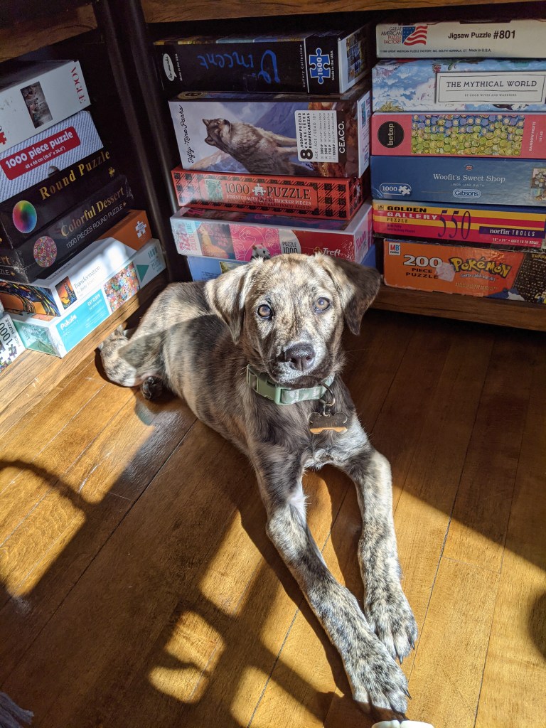 Outside of puzzling, I enjoy hanging out with my pups Cannoli and Mooka, reading/listening to (audio)books, attempting to cook, and traveling. But let’s be honest, most of my time goes to puzzling and puppy snuggles!